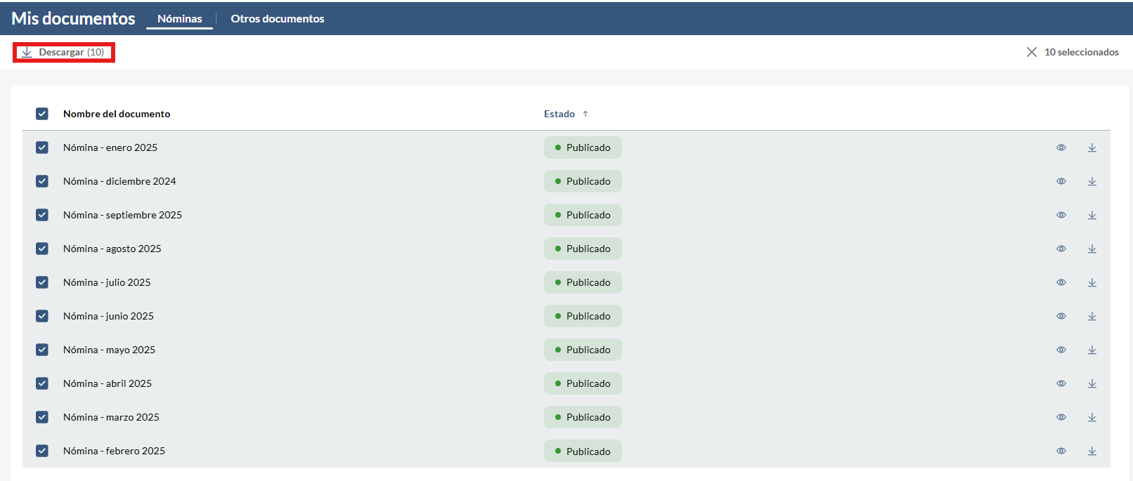 📌 También pueden seleccionar una o varias nóminas y descargárselas en formato ZIP :